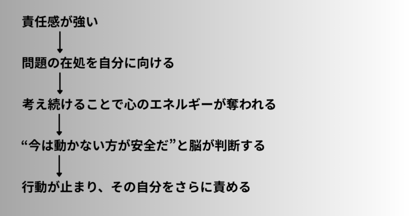 責任感が強い人ほど、問題の原因を“自分の内側”に置こうとします。